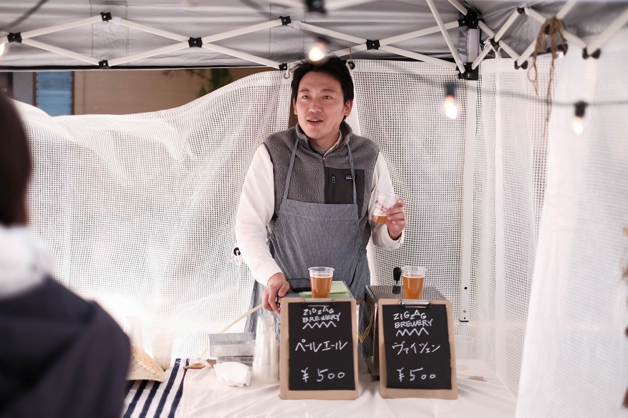 クラフトビールを愛する庄田代表。マーケットの時は「ワンダーバー」として販売しています。マーケットのコンセプトや運営面の責任者です。