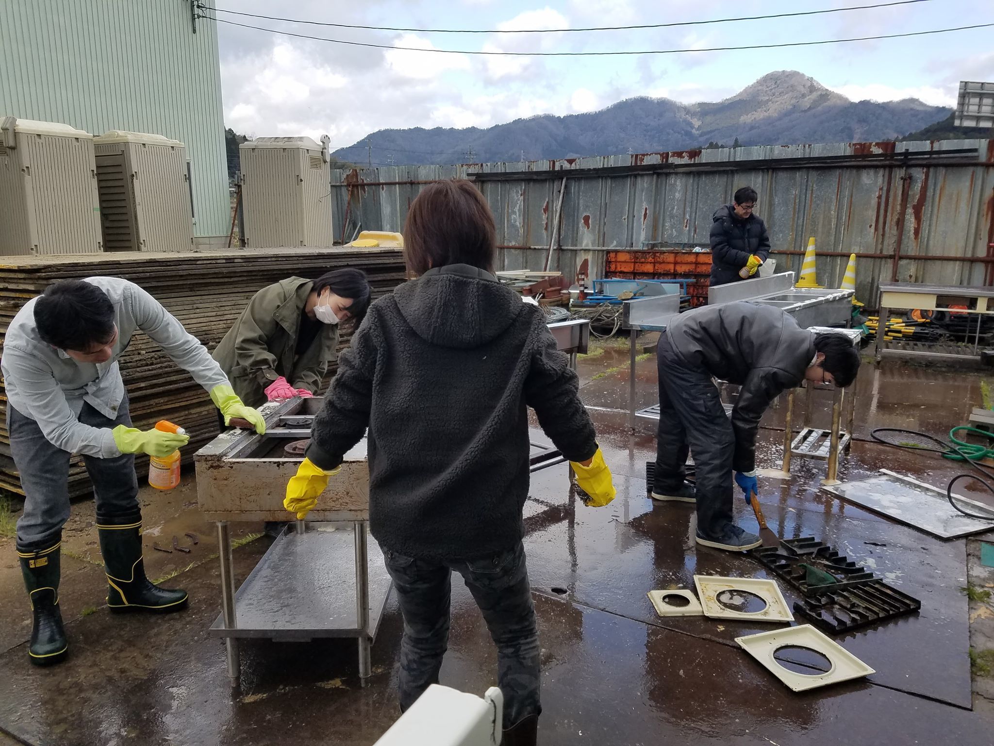 厨房も地元の建設会社さんからいただいた物を磨いて再利用します。
