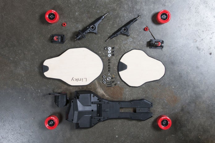 軽量:Linkyは重さは5.5キロで、電動スケートボードの中では最軽量のクラスに入ります。構造部分には重い金属部品のかわりに、自動車と同じ高強度ポリマーを使用、デッキにはカーボンファイバーと竹を使用しています。