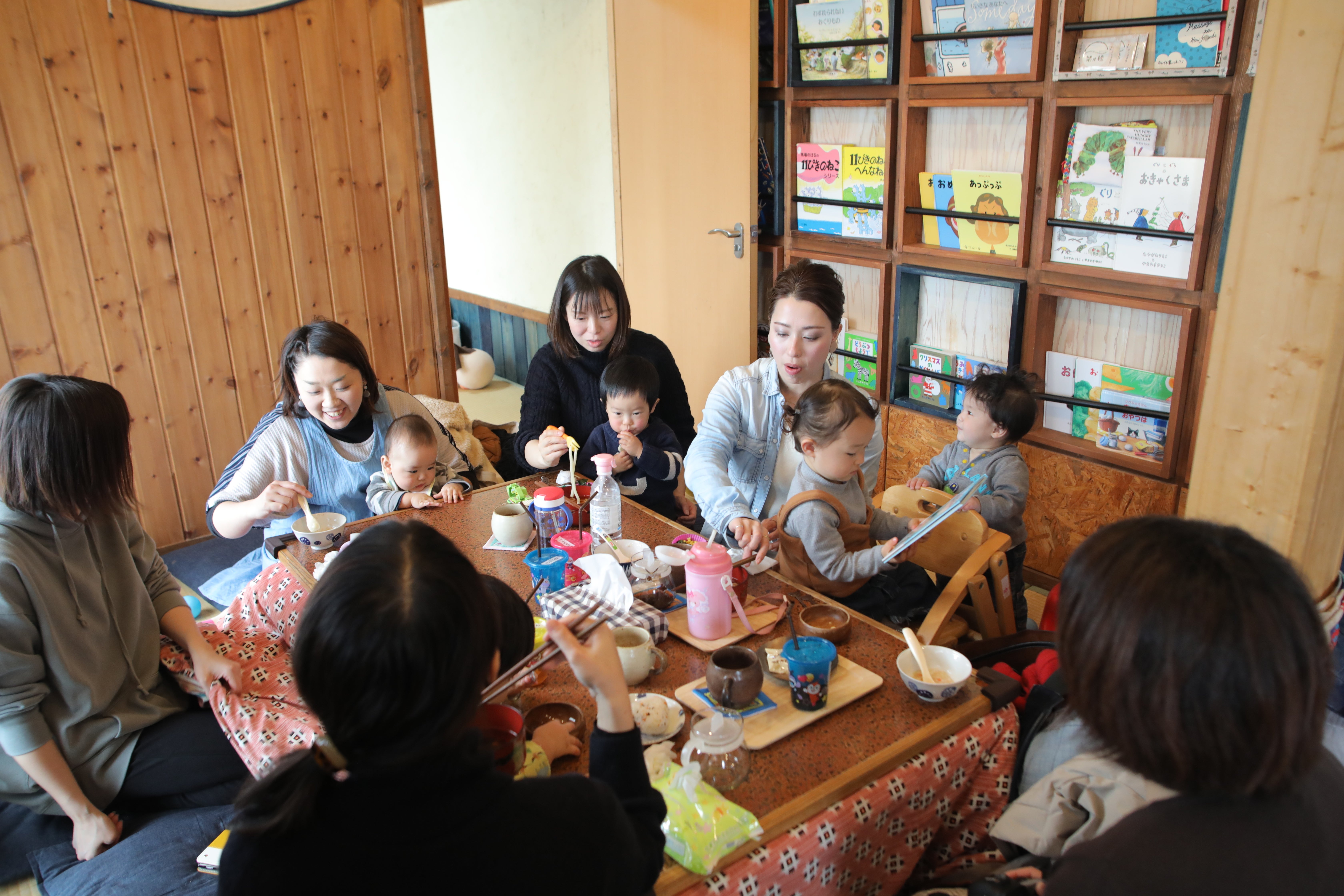 (昼間の絵本カフェ:ママたち向けのイベントもたくさん開催されています)(昼間の絵本カフェ:こどもたちにとっても楽しいがいっぱい)