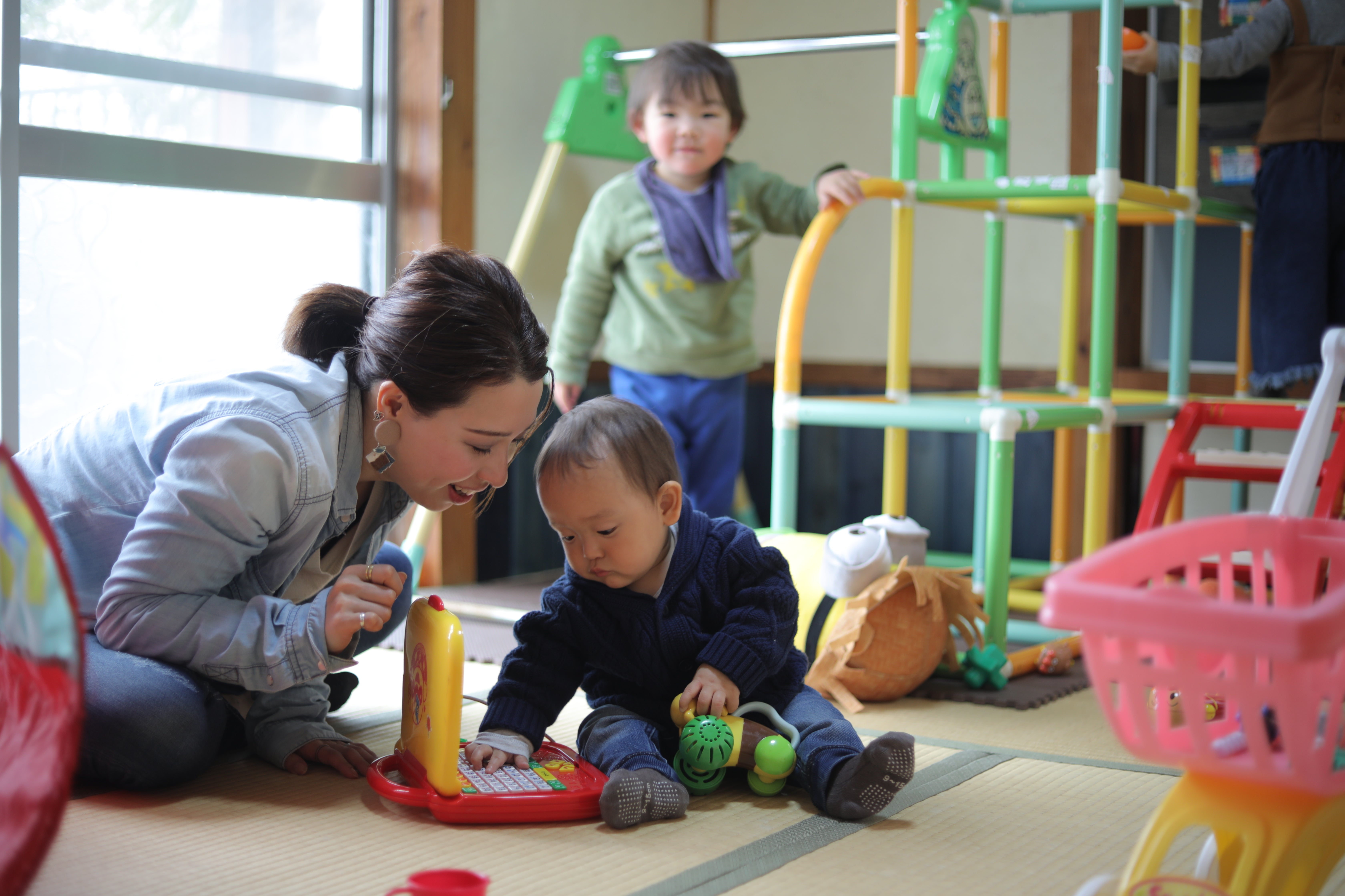 「寝返りがうてるかうてないかくらいの乳児」と、「動きたい盛りの2歳児」を同時に預かるには、仕切りで区切ることが大切だと思っています。