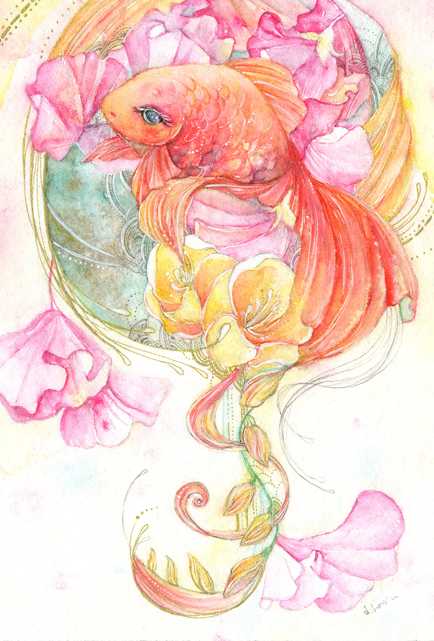 金魚と人物の組み合わせは今の所描く予定はありません。