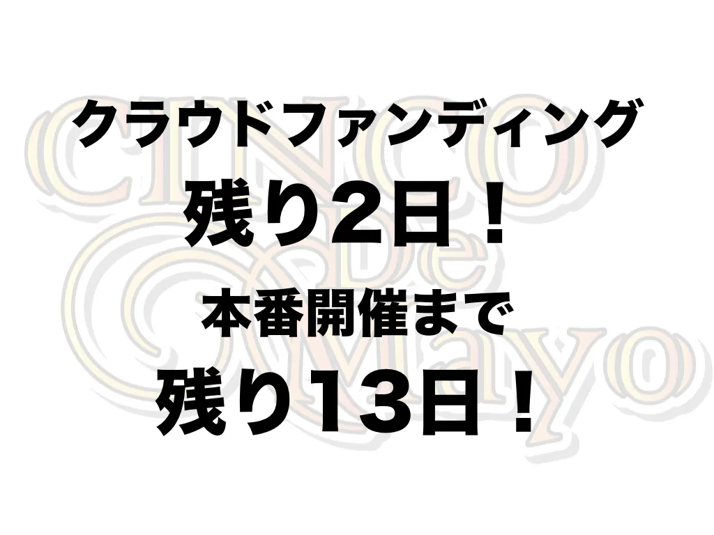 シンコ・デ・マヨに関わってくださっている皆さま、毎年楽しみにしてくれている皆さま、みんなでシンコ・デ・マヨの消滅の危機を救いましょう!