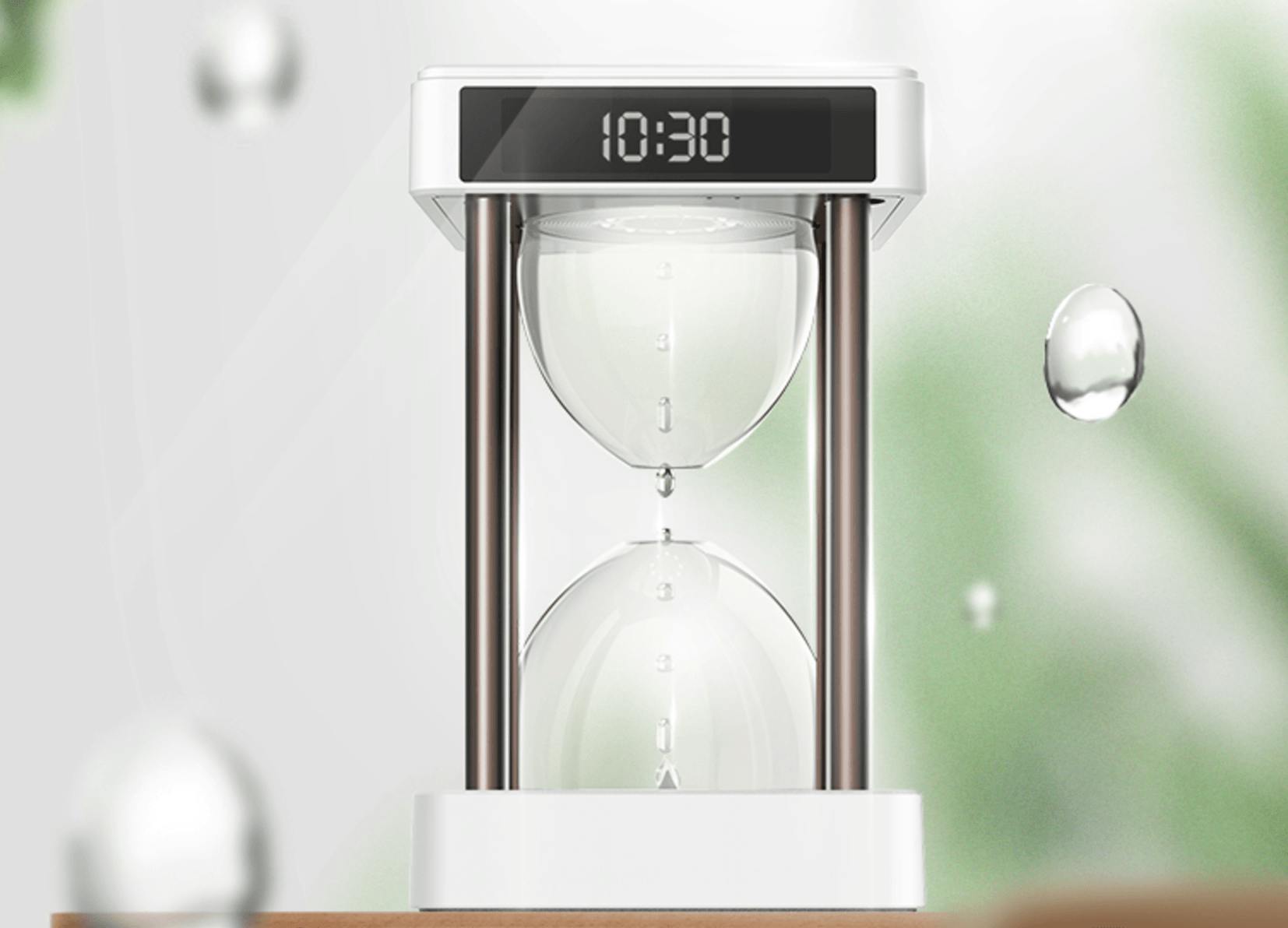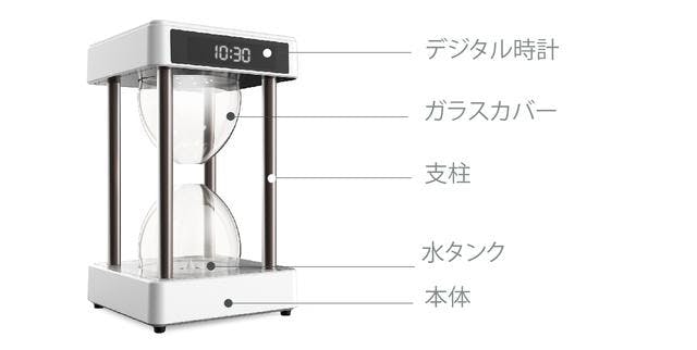 ガラスの水時計をセットしてスタートボタンを押すだけで、魔法のような水のアートへようこそ。