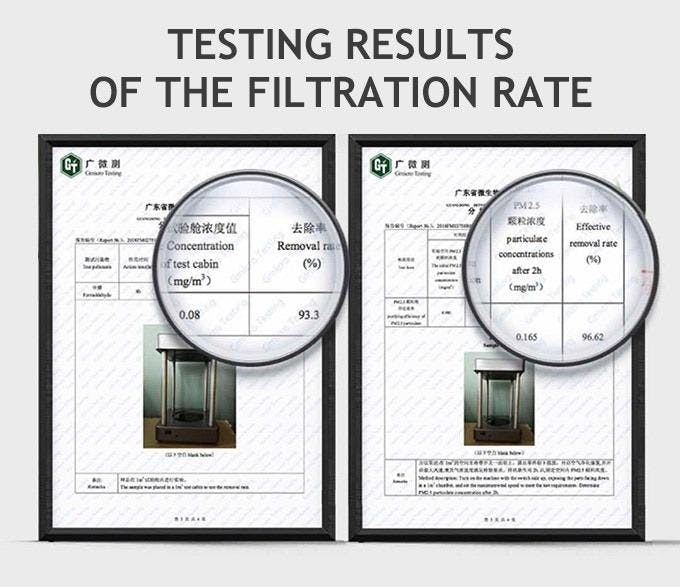 本物の水滴が天に向かって逆流するイリュージョンと独特な佇まいに、ついつい目を奪われてしまいがちですが、実はホルムアルデヒド除去率93.30%、PM2.5除去率96.62%の超本格派空気清浄機。