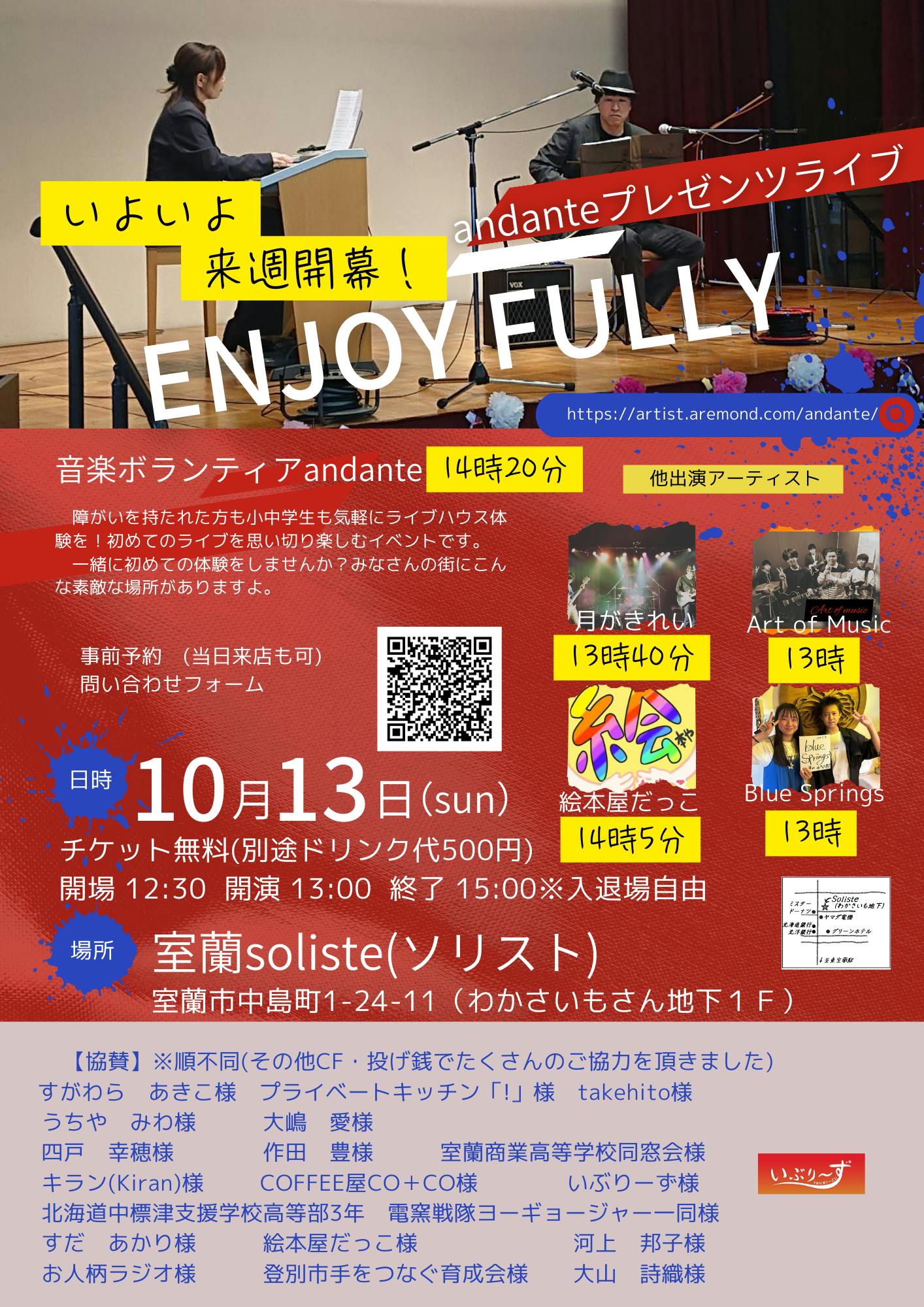 10月13日日曜日、北海道室蘭市で企画するライブイベントに障がいを持たれた方や小学生を無料で招待したい。