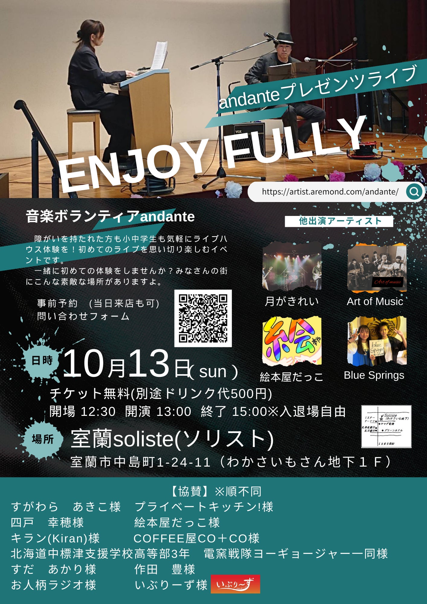 andanteイベントに向けて準備をしております。現在10月13日のイベントフライヤー作成中です。協賛のお名前追加などありましたらお申し付けください。