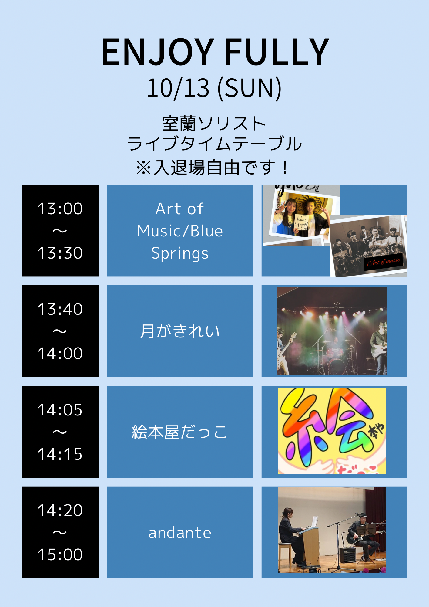 10月13日日曜日イベントゲスト紹介③月がきれい〜andante木村率いるバンドです。当日は一曲andante類さんともコラボします!