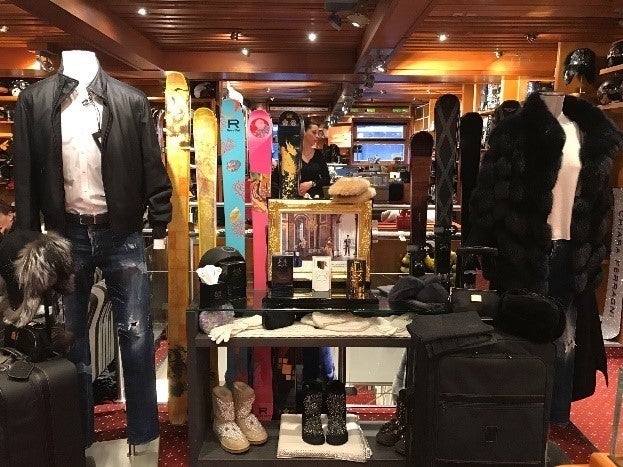 高級スキーリゾート地にある5つ星ラグジュアリーホテル内にあるスキーショップでは、ショップオーナーに一目で気に入ってもらえすぐに正式に展示販売してもらうことになりました。 (しかも壁にかかっていた某ラグジュアリーブランドのスキー板を外してまで! )