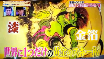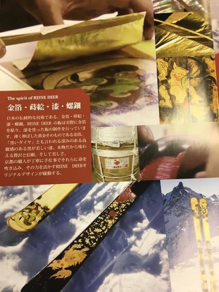 普通使わない素材、「金箔」や「漆」をスキー用品に使っているところがおもしろい