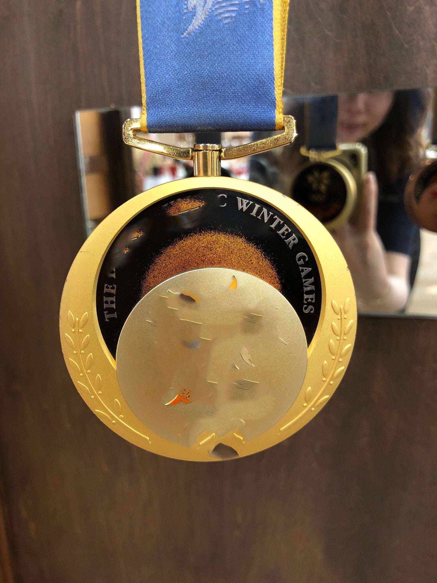 長野で行われた4年に一度の国際的な大会の漆のメダルも木曽漆器の制作です。メダル裏にも「漆」に「蒔絵」。