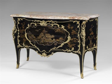 フランス18世紀の西洋箪笥(コモード)。17世紀の日本の漆蒔絵の長持ちをアレンジして、家具に仕立て上げています。ルイ15世様式。当時、漆は「黒いダイヤモンド」といわれるほど貴重でした。