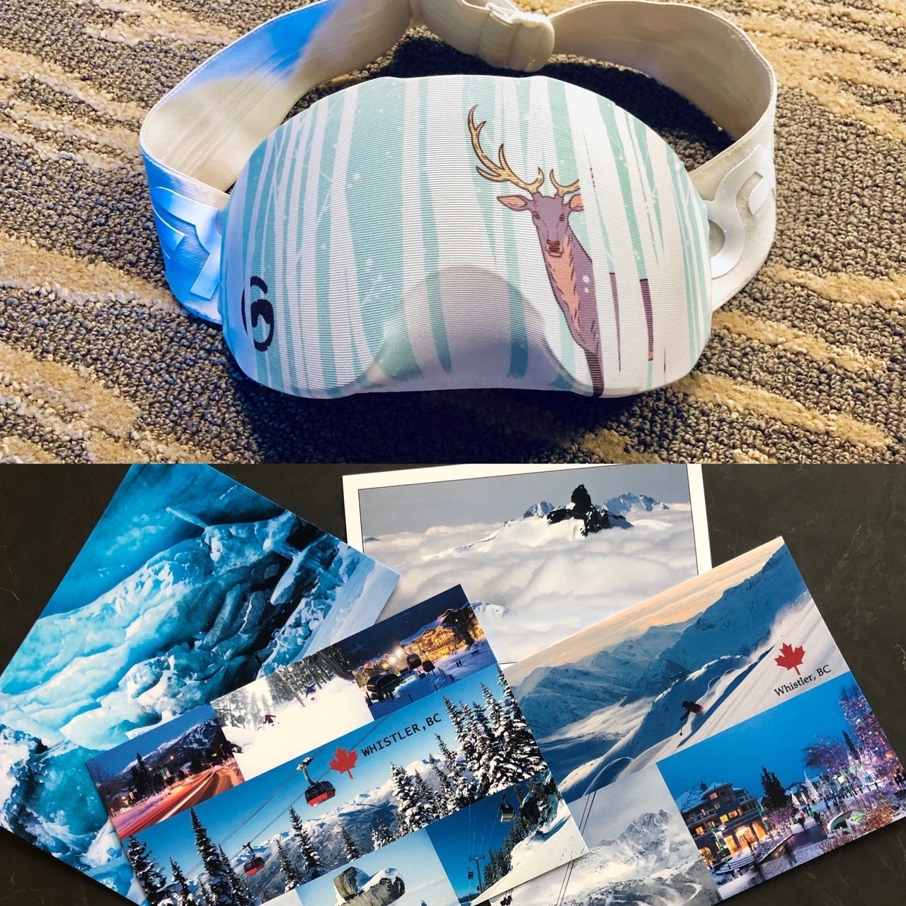 3. 12,000円 世界の名だたるスキー場から手書きのお礼ポストカード+ゴーグルソック(1+2)