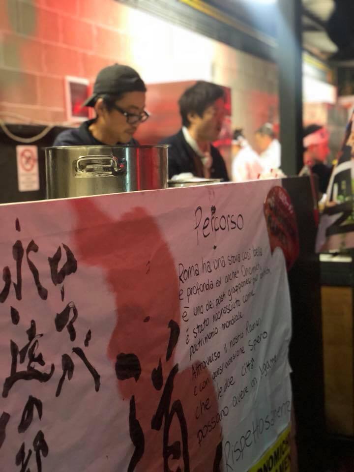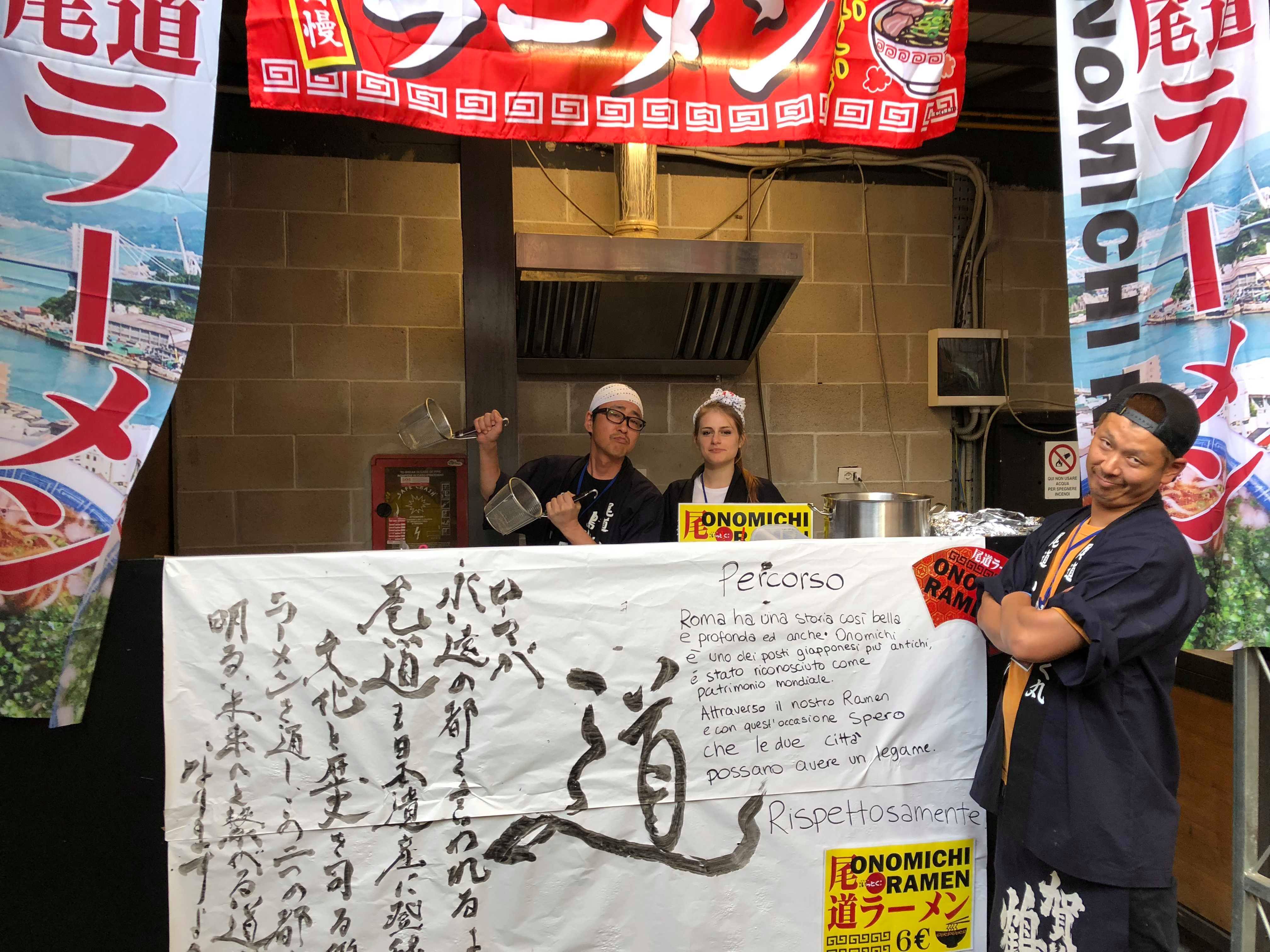 昨年、初めてローマにて、VIA JAPAN(日本通り)という、日本食ブースが連なるイベントに尾道ラーメンブースを出展してきました。驚いたのは、イタリアの方々が我々の元気な接客や、ラーメンの味に興味津々だったことです!沢山のお客様がお越しになられ3日間で2400杯も提供させていただく中で、「やっぱり日本の食、居酒屋文化は世界に通用するんだ」と確信を得ることが出来たと同時に、