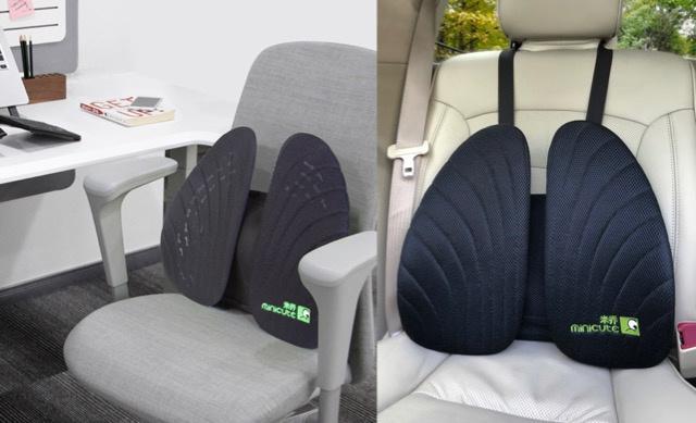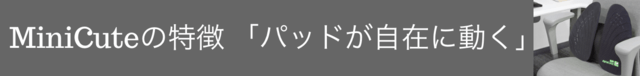 よくあるS字カーブを模したものや、クッションタイプのウエストサポートと違い、MiniCuteは2つのパッドが腰から背中全体を広く支える構造です。