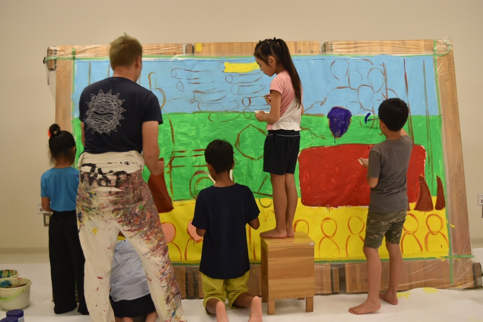 倉敷市教育委員会さんは、今回のプロジェクトの趣旨に賛同し、すでに多方面での協力をしてくれています。今年の秋に東京の子ども達と製作した壁画アートも、倉敷市立美術館の大きな作品展で展示してくださいました。
