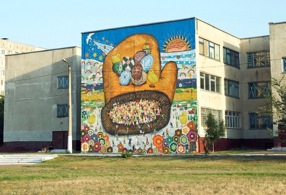 ミヤザキさんが製作したウクライナの壁画アート。手袋の童話をモチーフに平和への想いを表現。 (写真提供:Over the Wall)