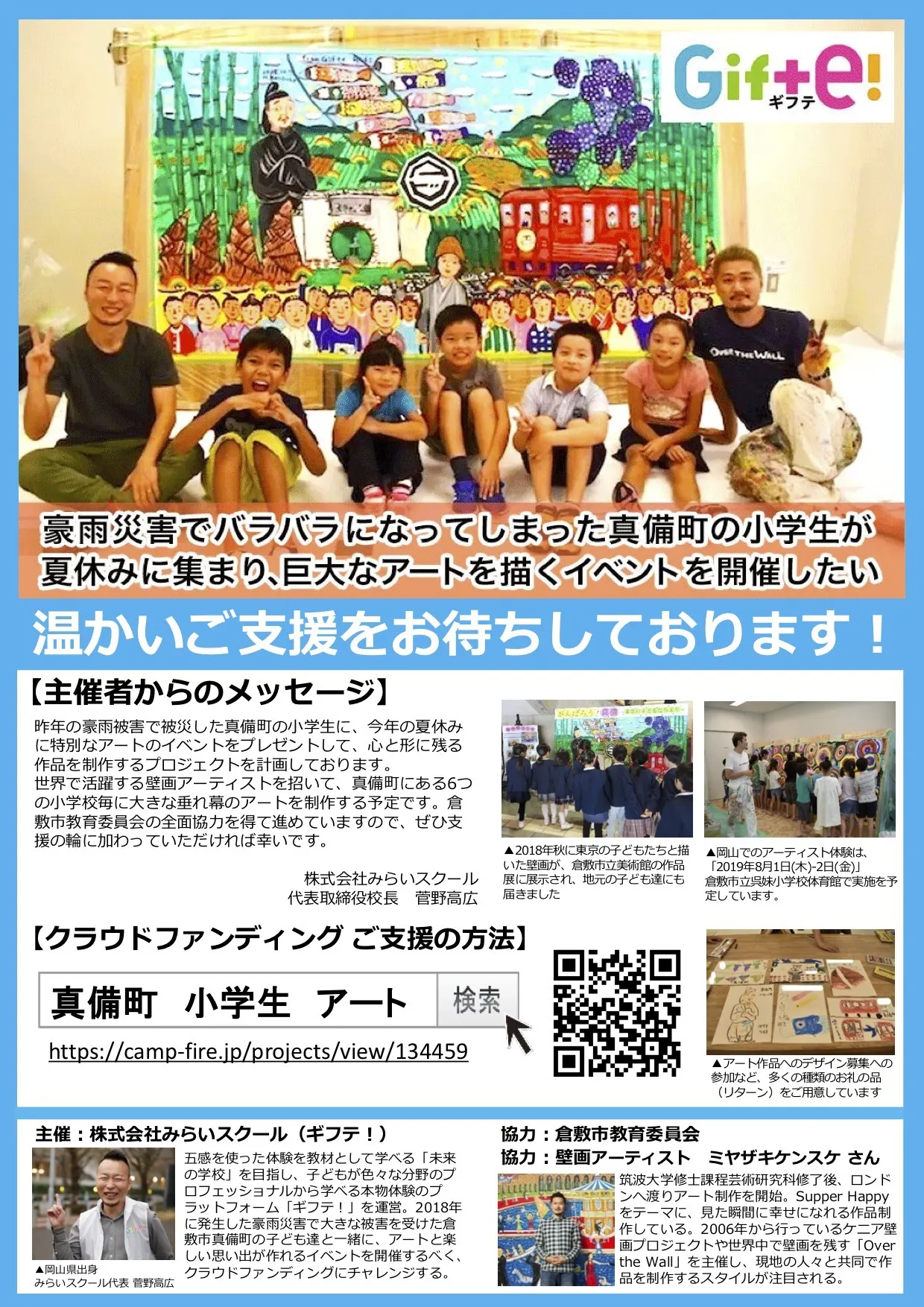 日程が近くなり、倉敷市教育委員会さんにご協力いただき、真備町の小学校へのデザイン募集もスタートしました。