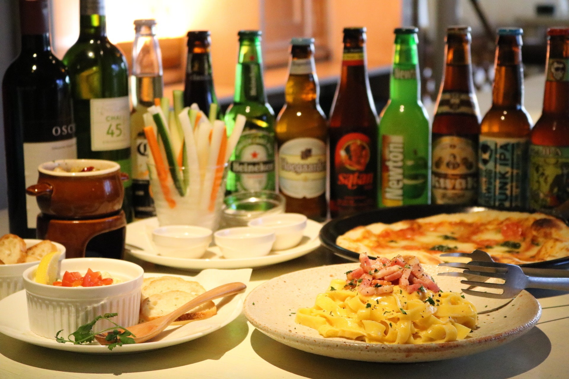 4タップの国内外クラフトビールとボトルビール、それに合わせたおつまみあります。ビールだけでなく季節に合わせた日本酒も!