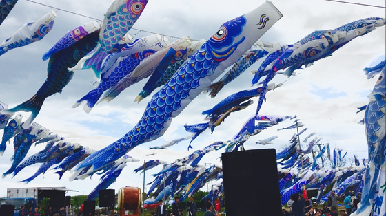 全国から寄せられた800もの青い鯉のぼりの下でバイオリンを弾かせていただきました。