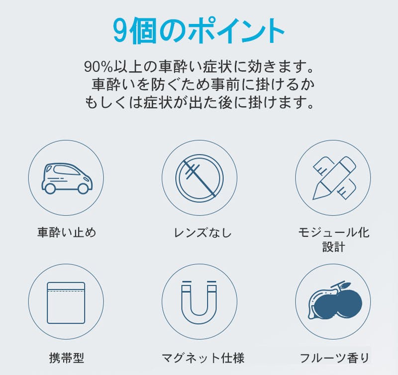 A.個人差はありますが、約90%の乗り物酔いをする方に効能があります。