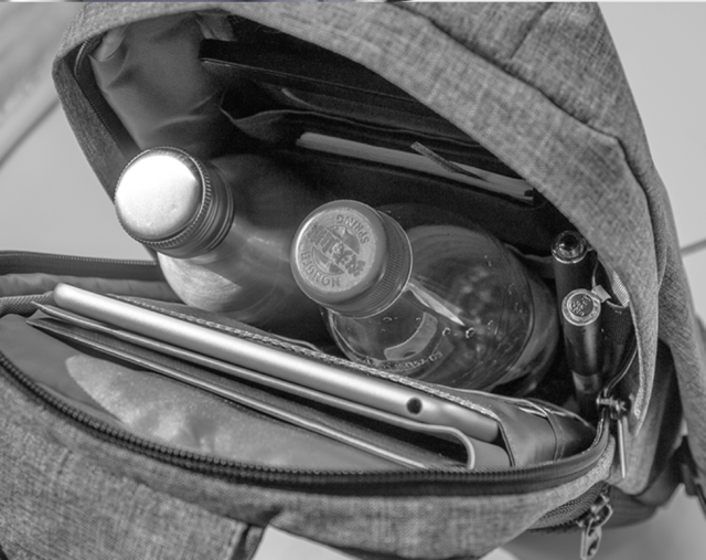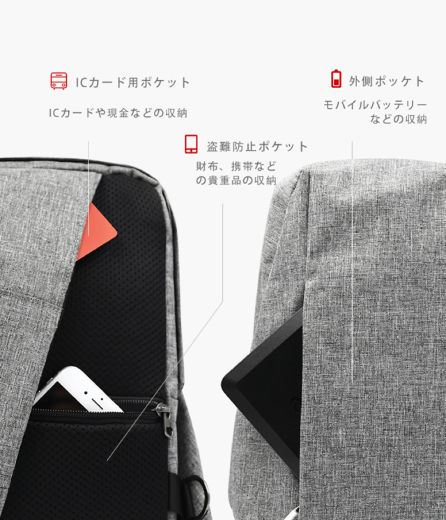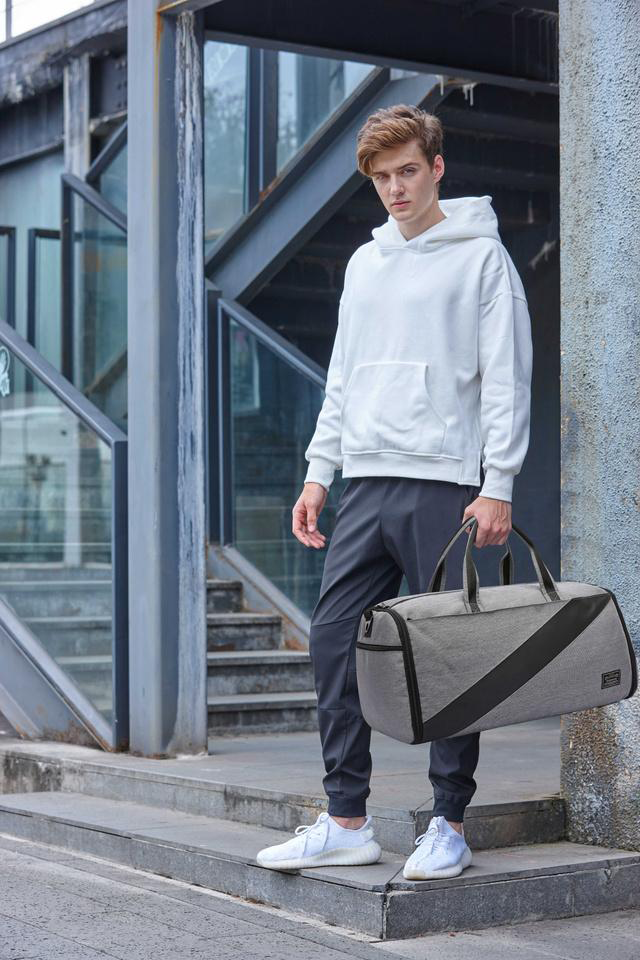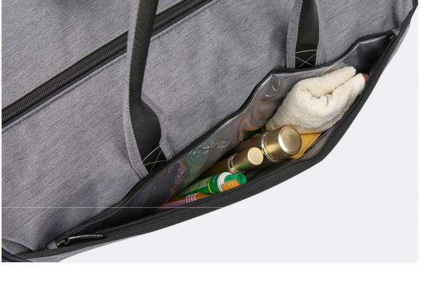 バッグ外側の乾湿分離ポケットは、濡れたタオル、スポーツウェアおよび洗面用品などをバッチリ収納してくれます。