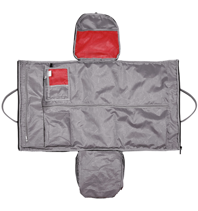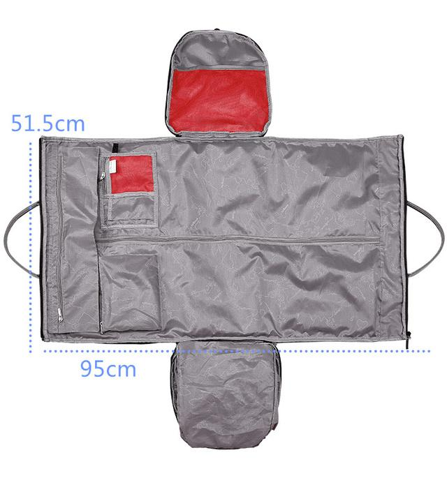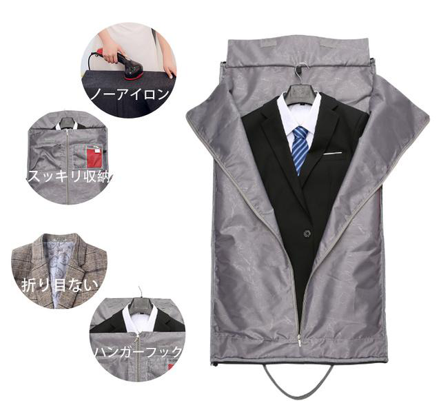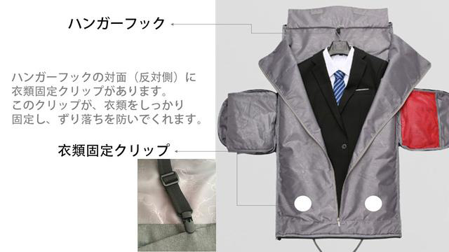 - ①180°全開!スーツにシワなし!シューズも収納!51ℓ超多機能ガーメントバッグ。
