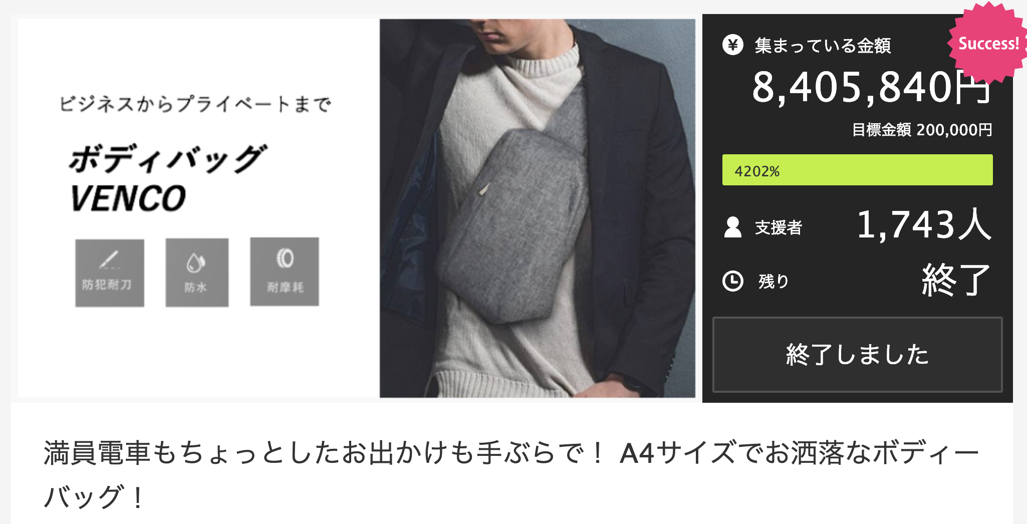 2019/08/21 12:52ご支援者のみなさまいつもお世話になります。2018年秋、2,000名・1,000万円を超えるご支援を集めたボディバッグ『VENCO』お客様の声をフィードバックし、さらに進化した次世代モデル『VENCO NEXT』の登場です!https://camp-fire.jp/projects/view/176455プロトタイプをモニターの皆様に使っていただき、その感想・ご意見を踏まえ商品を完成させる予定です。お客様に喜んでいただけるバッグをともに作りあげられれば最高です。是非、本プロジェクトを最後までご覧いただき、ご支援をいただけますと幸いです。宜しくお願い致します。ライフサイド泉達矢 もっと見る