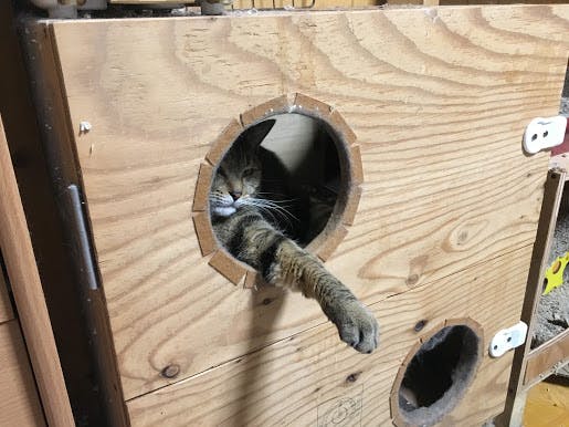 猫の脱走防止用に部屋を仕切っているために、非常口標識が必要だと・・・。