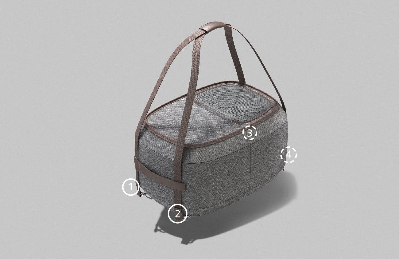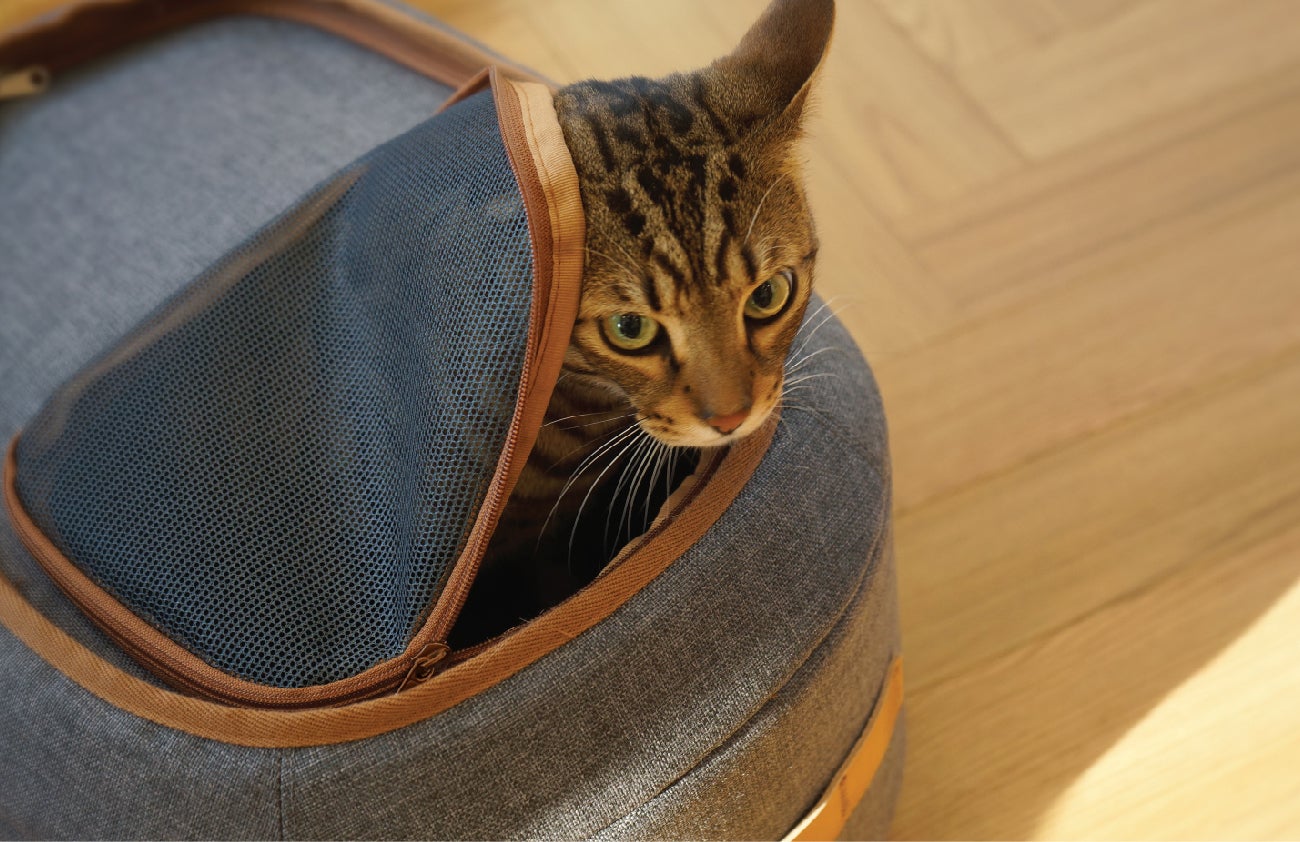 ミオミアオ (MIOMIAO) の「ケリオ (CARRIO)」は、普段は愛猫の猫ハウスとして使えるほか、移動時にはリュック型または持ち手型のベルトで、2WAYの移動用ケージとして使用できます。
