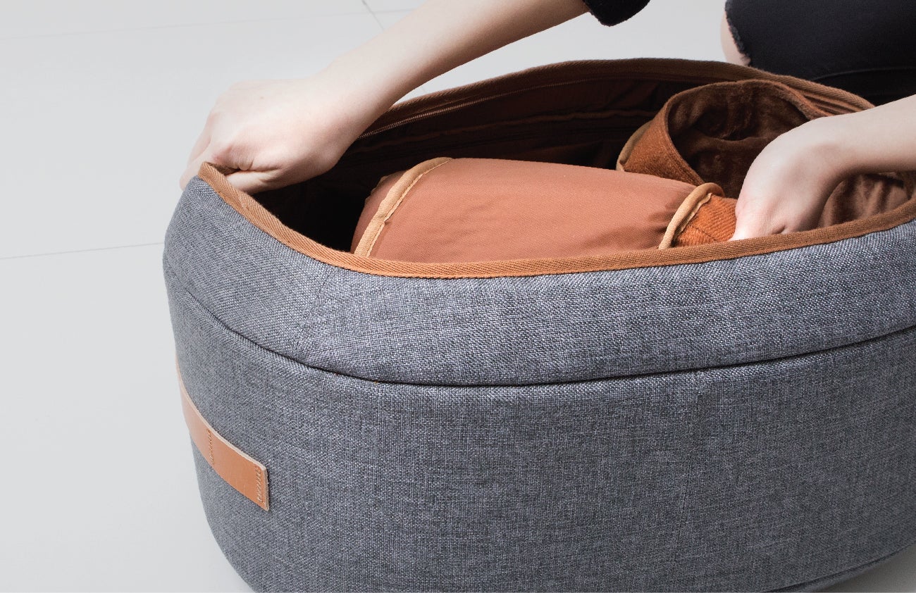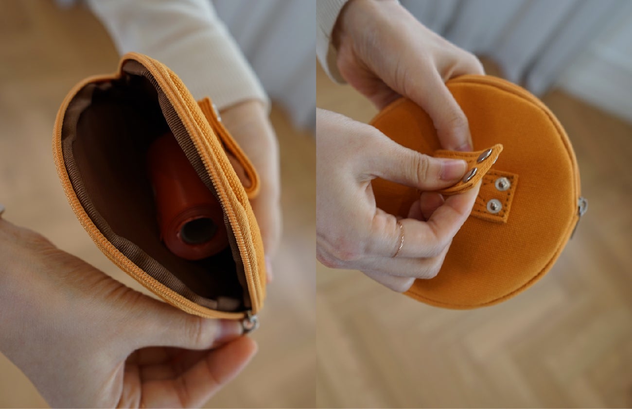 取り外した裏地の底面のジッパーを開いて、冬場は「カイロ」、夏場は「アイスパック」を入れれば、温度調節が可能です。