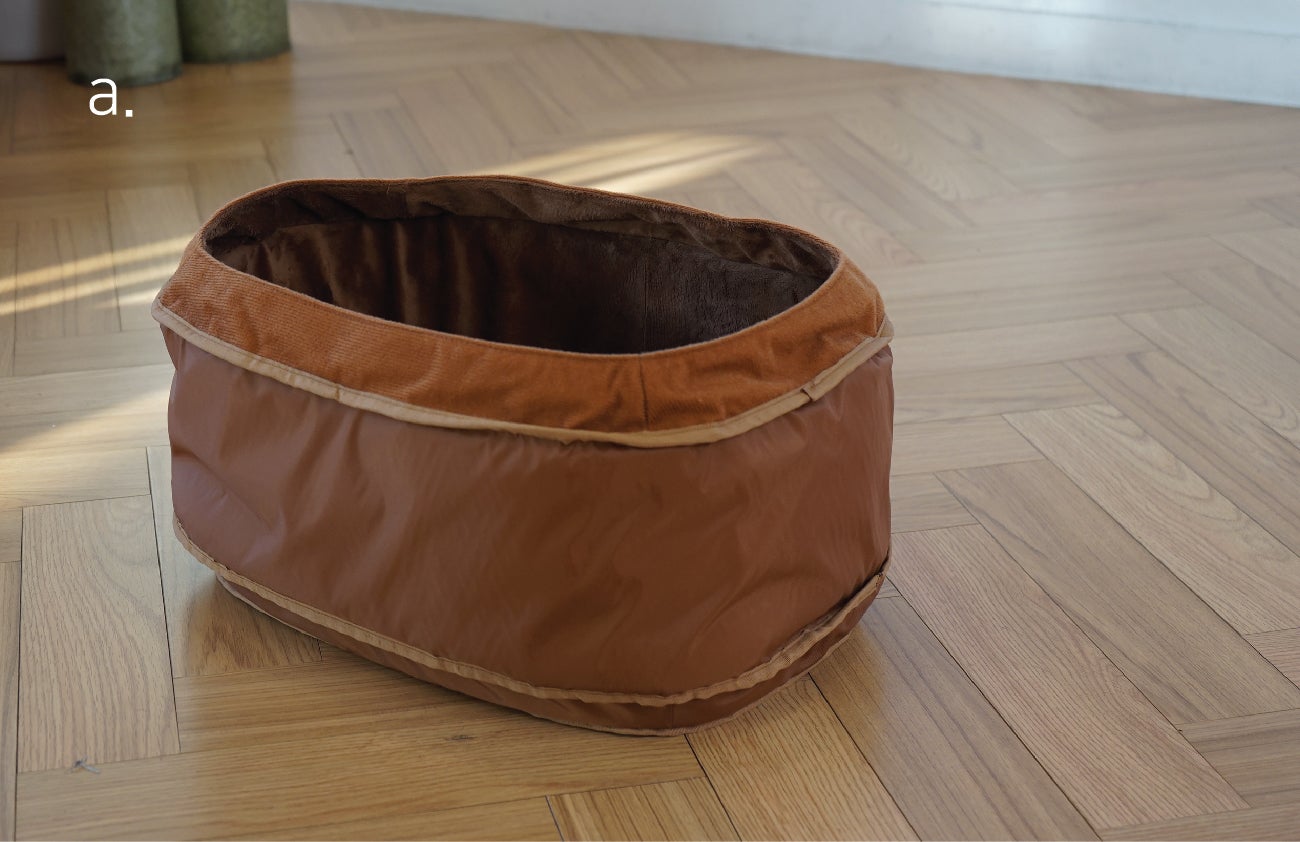 A: 表地は必ず手洗いしてください。洗濯機の使用により、他のバッグや猫ハウス同様、表地が変形してしまうことがあります。裏地には洗濯機を使用できますが、手洗いされる方が長持ちします。