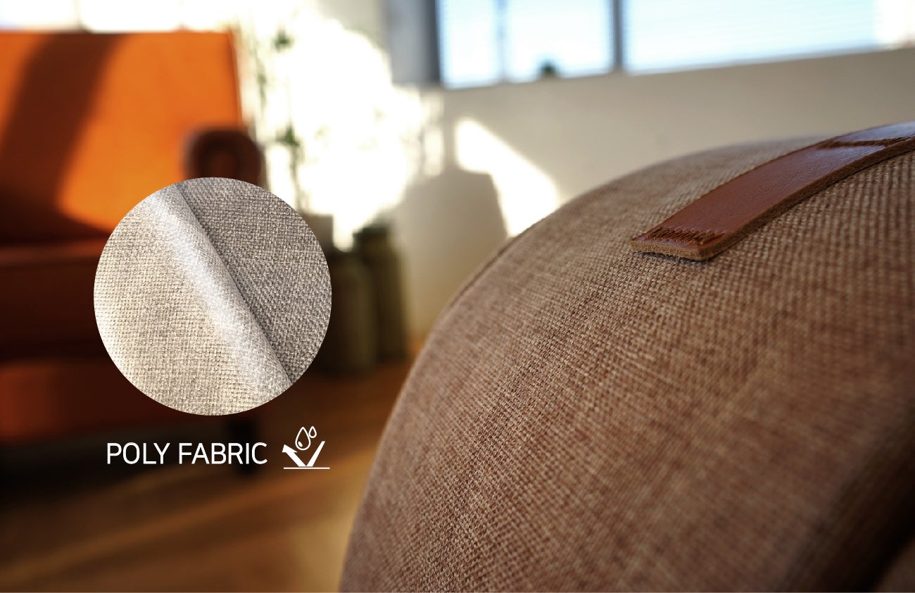 表地: 温かみのあるポリエステル織物を使用しています。/ 表地の裏側: 防水コーティング仕様です。