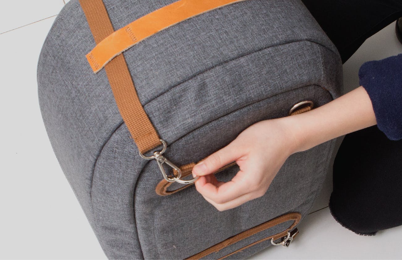 持ち手ベルトを4か所のポイントに通すことで安定したバランスで移動できます。