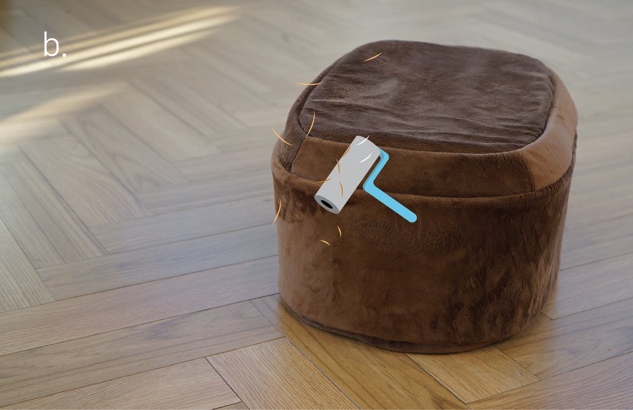 - 洗濯以外にも裏地をひっくりかえして猫の毛やほこりを手軽に取り除くことができます。