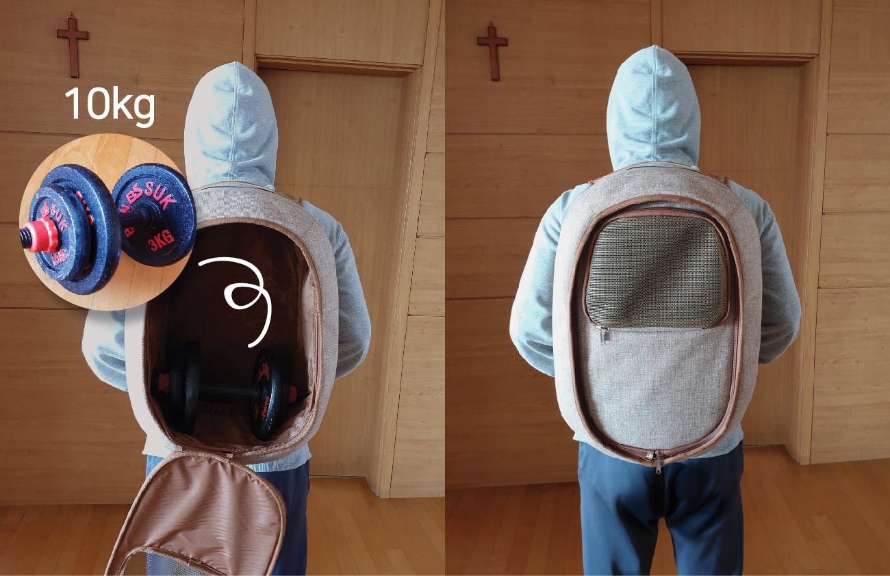 取り外した裏地の底面のジッパーを開いて、冬場は「カイロ」、夏場は「アイスパック」を入れれば、温度調節が可能です。
