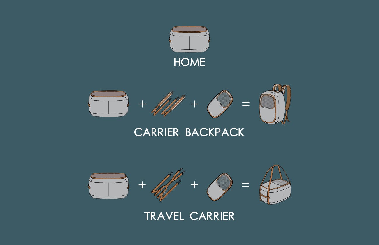 ミオミアオ (MIOMIAO) の「ケリオ (CARRIO)」は、普段は愛猫の猫ハウスとして使えるほか、移動時にはリュック型または持ち手型のベルトで、2WAYの移動用ケージとして使用できます。