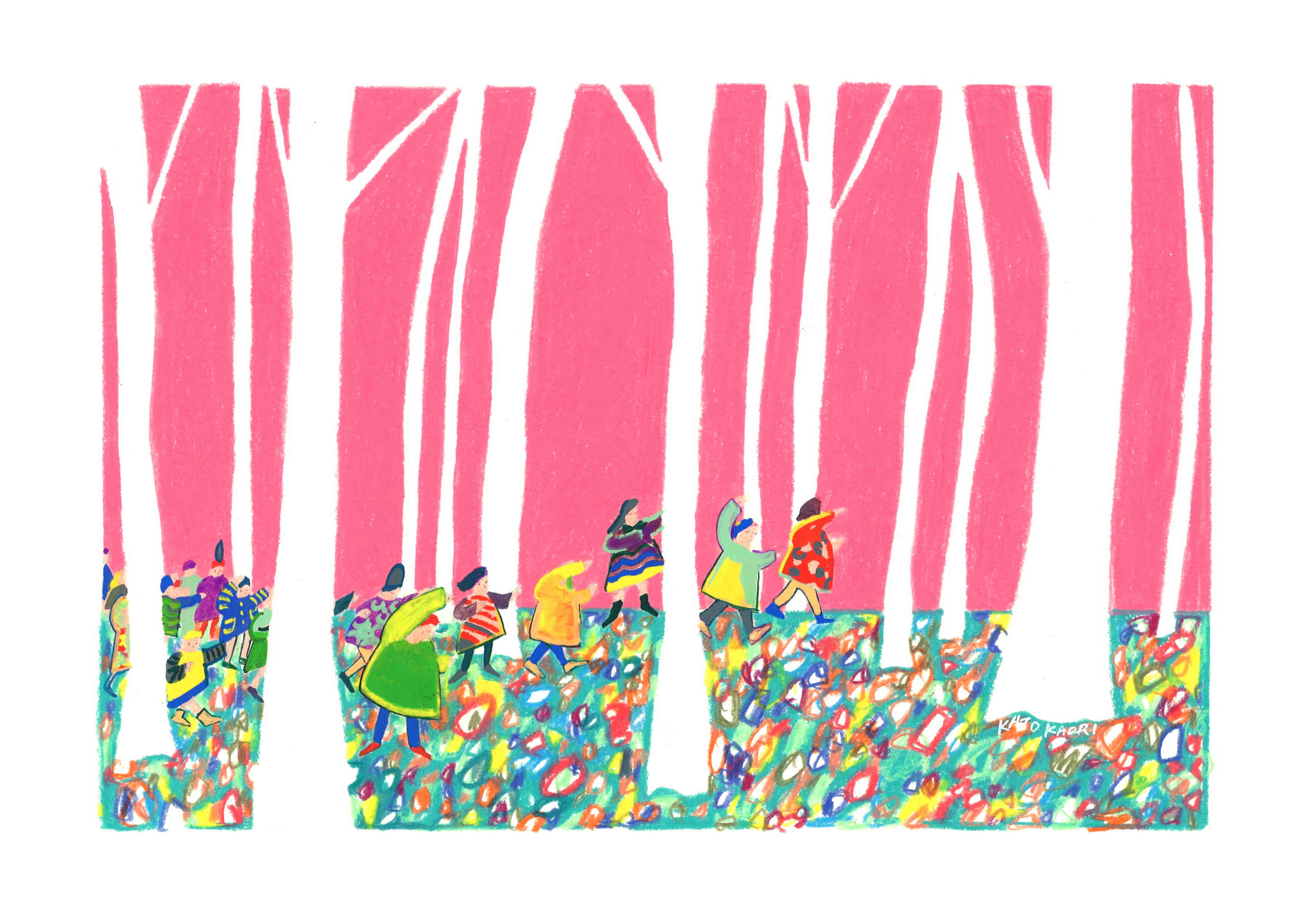 しかし、最近わたしの中に新たな気持ちが芽生えてきました。それは、「イラストでもっと何か伝えられるものがあるのではないだろうか。」という気持ちです。わたし一人が問題意識を持っても変わらないことも、イラストを通すことによって見た人とエンターテインメント性を持って共有することができるのではないだろうか、と思いました。
