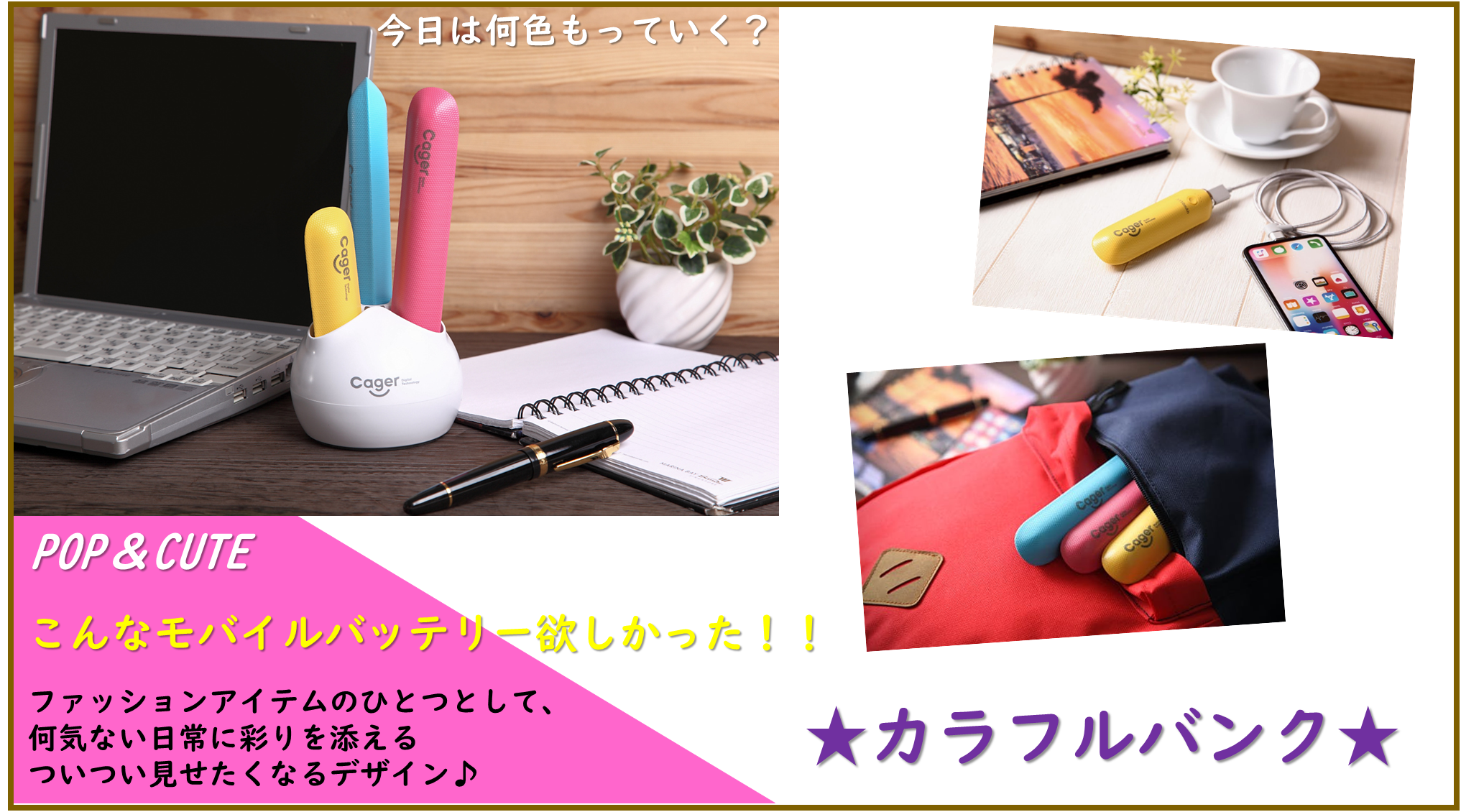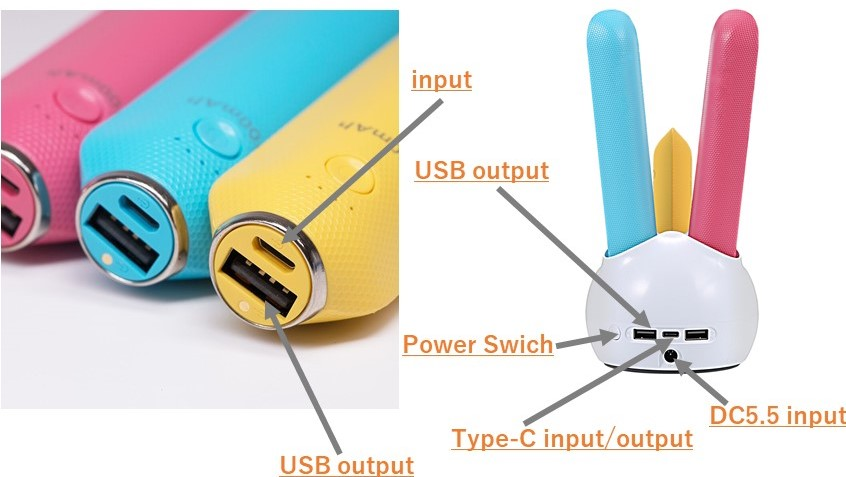 ・モバイルバッテリー3本(yellow、blue、pink)