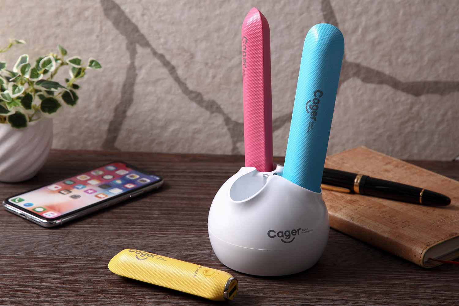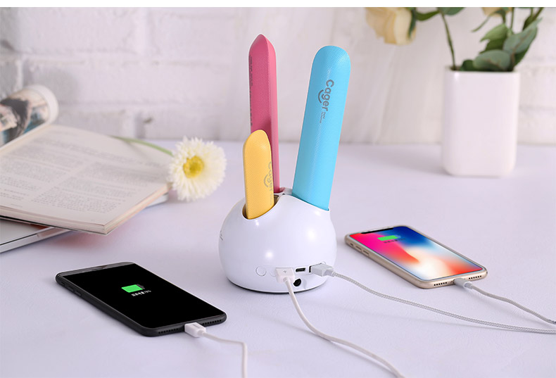 自宅やオフィスに充電器を置いておけば、刺すだけで3本まとめて充電できます。