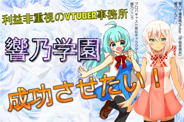 皆様。初めまして。利益を取らない、利益非重視型Vtuber事務所の響乃学園を運営を予定しております、プロパキャスト代表の澤田と申します。