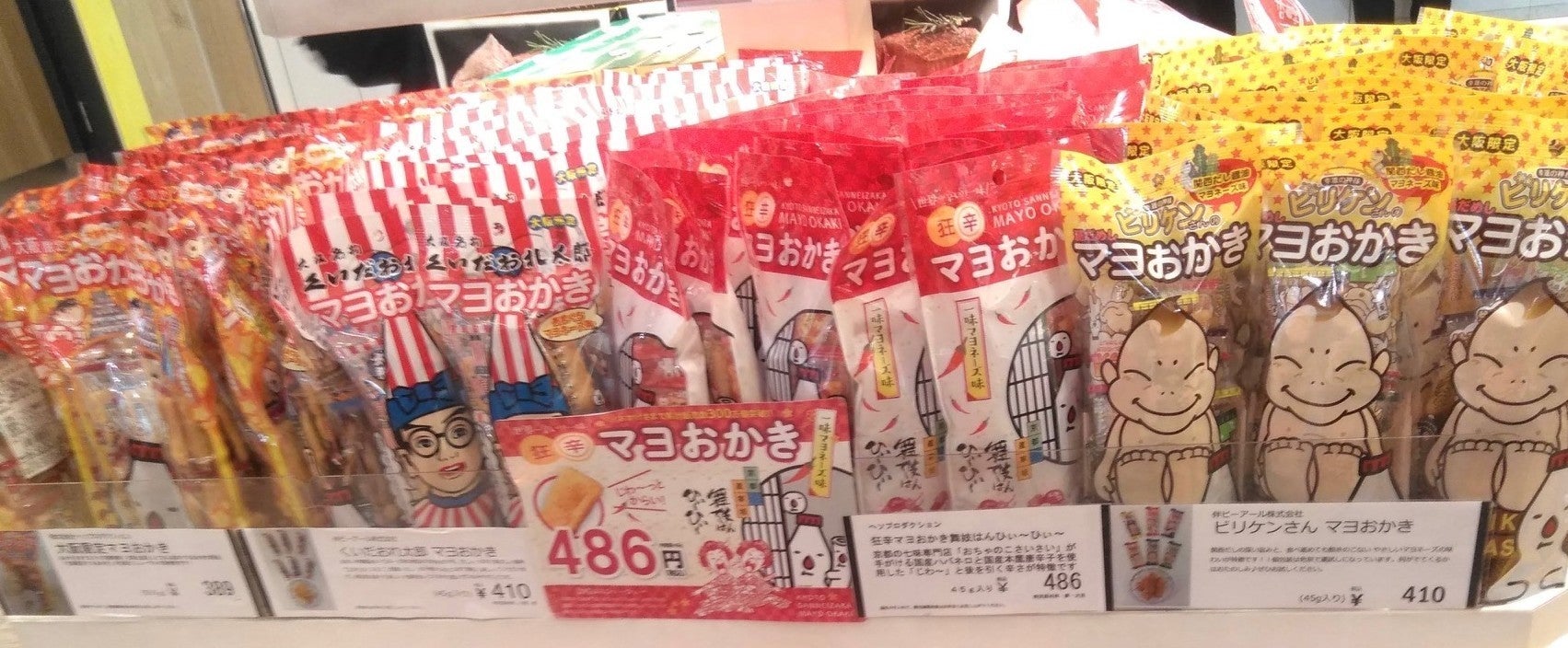 マヨおかきは新大阪駅や伊丹空港などで大阪名物のお土産物として人気の商品です。