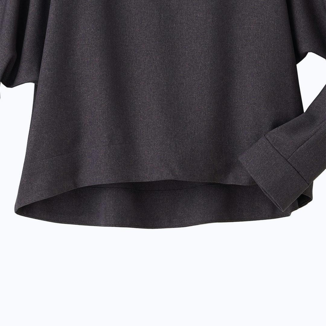 裾の長さに前後差をつけ、ウエストとヒップを美しく魅せる長さに仕上げました。