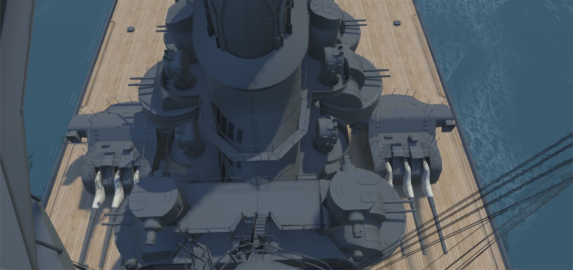 前檣楼最上部の防空見張所から艦の中央を撮影。