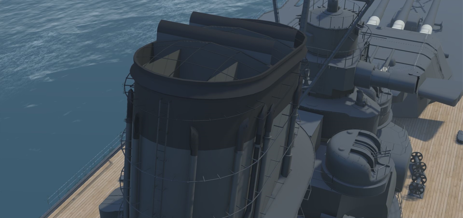 艦中央の煙突。