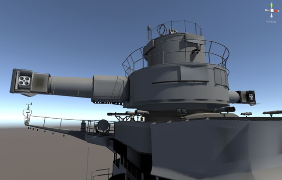 艦橋最上部と15m測距儀のスクリーンショットです。 もちろん、完成版では艦橋最上部から周りを眺めることができるようになりますよ。