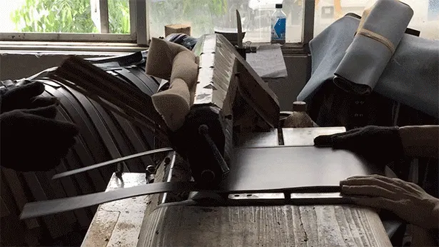 CLIC-FITのベルトはボンデットレザーを使用。ボンデットレザーは細かく裁断した天然皮革を樹脂で固めて一枚の皮にします。通常は廃棄してしまう天然皮革の端布を使用できるためリサイクルレザーとも呼ばれており環境にやさしい素材です。