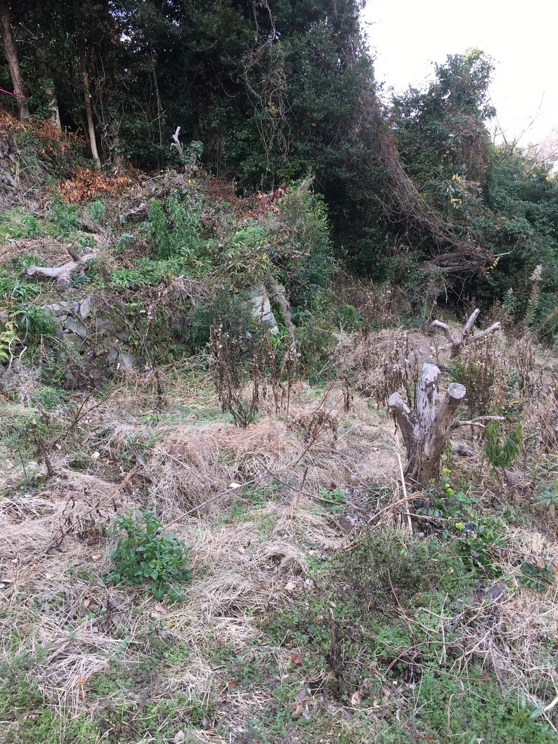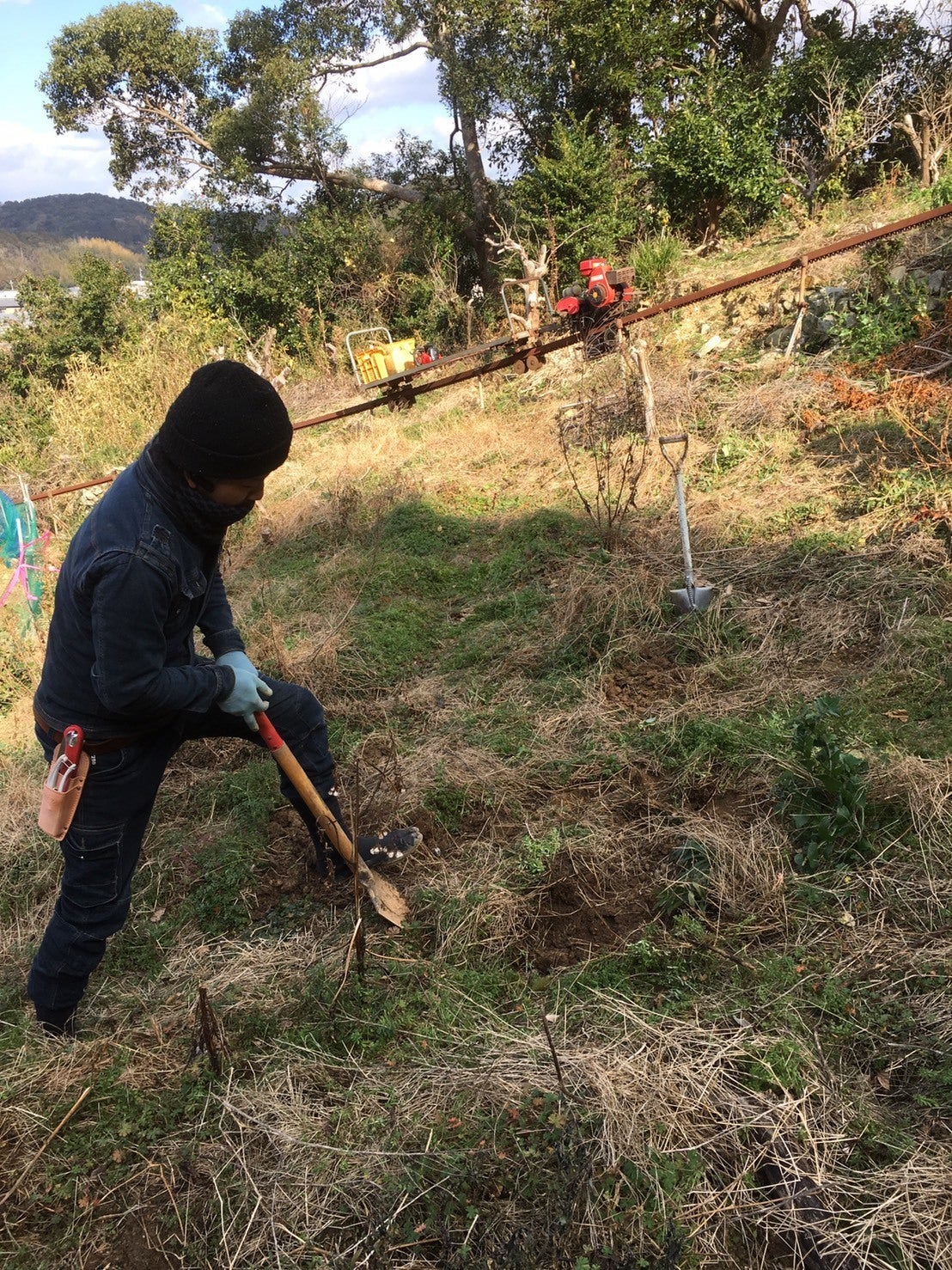 山の斜面なので、大きな重機を持ち込むことはできず、すべて手作業での開拓になります。