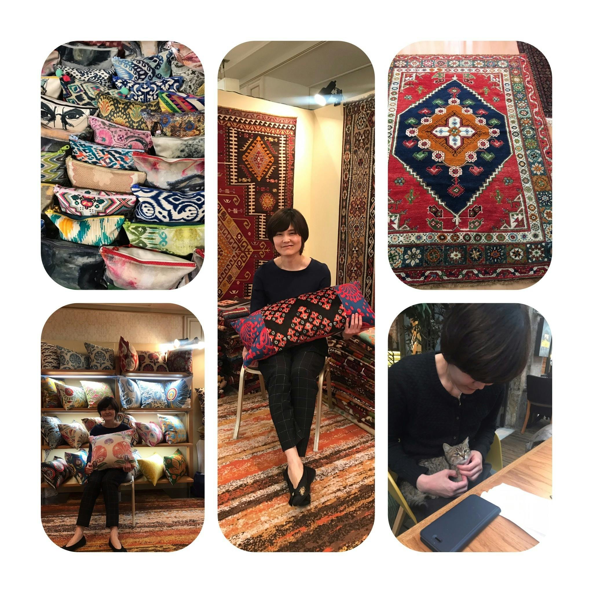 来日の都度、キリムや絨毯、伝統とモダンが融合した鮮やかな色づかいのクッションを見せてもらううちに、すっかり虜になっていました。
