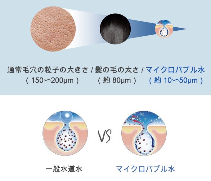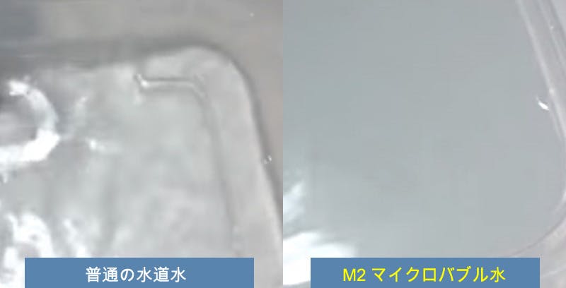 マイクロバブルは大きさが5~10μm(マイクロメーター,あるいはミクロン,1μm=0.001mm)なので肉眼では確認することが難しいです。 私たちの体に良い点が多くて'空気の中のビタミン'とも呼ばれたりします。